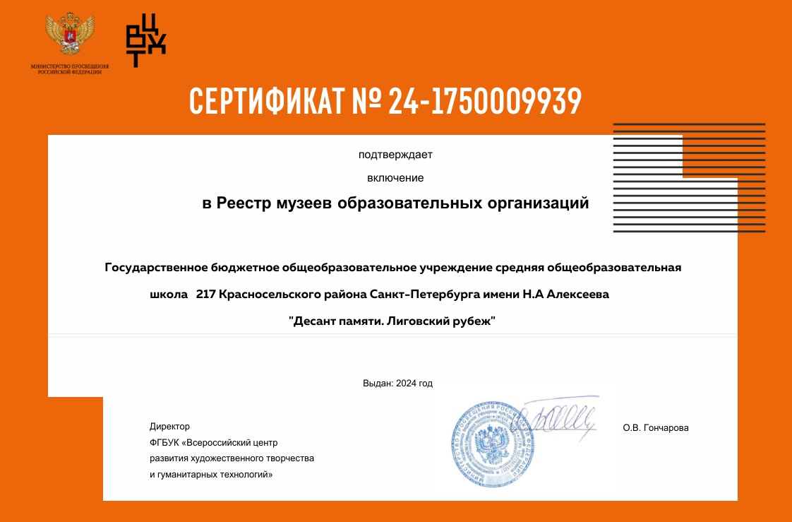 Государственное бюджетное общеобразовательное учреждение средняя общеобразовательная школа №217 Красносельского района Санкт-Петербурга им. Н.А. Алексеева